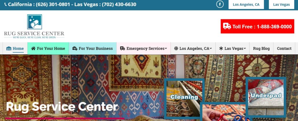 Rug Service Center is one of the top rug cleaning and restoration companies located in Las Vegas and LA. The website developed for the brand incorporates both locations with SEO for both markets and the accompanying pages of content necessary to represent Nevada and California rug cleaning markets.